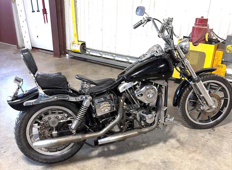 Richard Hayden had this bike. the wide glide was on it and the kick starter as well. Jack Flash acquired it after the Taft crash. He rode it a bit then asked me store it. two years later he offered to sell to me. I road it to work 60miles one way for a couple years. I over hauled it and decided to make some changes and campaigned it at El Mirage along with a Sportster. Then I missed a shift while Drag Racing against MJ on her Sportster! All Harley Drags at Carlsbad. She got Fourth Place by the way.