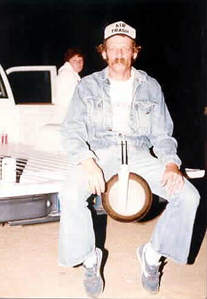 Jimmy as "Peter Pan" at a halloween party at Perris. Notice the frying pan between his legs with a dildo hanging in front.