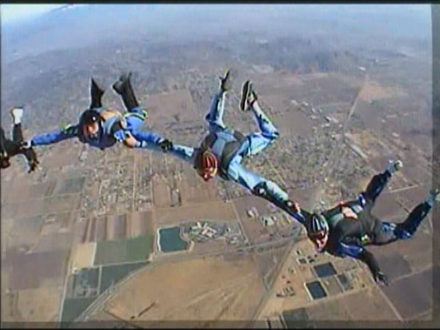 On Saturday, Dec. 3rd, Danny Hayden made his 500th skydive. To celebrate this momentous event, a 6-way skydive was planned. Those on the jump were : Danny Hayden, John Brasher, Larry Walsh, Bob & MJ Butt, and myself. We quickly got the 6-way round together, with Danny entering last & held it while freefall photographer Brian Stroop filmed the action. From that point, we broke to an open 6-way line, so Brian could catch everybody geeking the camera. Ground winds were good & everybody had nice landings. Longtime Air Trasher Fred Basile , "Little Don" Vredenburg, and Larry Walsh's dog "Tabby" [our Air Trash mascot], guarded over the ice chest while we were in the air. Also on hand to watch the jump, was Danny's longtime work buddy, Mario & his son Mike. After the skydive was over, we got to view the video & of course the usual parking lot reverie & mayhem ensued, with special emphasis given to Christmas songs & poetry, compliments of the "Air Trash Tallywacker Choir". A little bit later in the afternoon, Danny's wife Melinda, and also veteran Air Trash guy Chet Bennett, were able to meet up with us & join in on the celebration for Danny. We were even able to place a call to our good Air Trash buddy & fellow Silly Tit, Don Vredenburg, who continues to heal from his carotid artery "Roto-Rooter" job. Don, we wish you a speedy recovery. It was a great day & a good time was had by all. Congratulations Danny,on the completion of your 500th skydive. There is a DVD of the dive somewhere but we don't have it yet... Stay tuned... This is John Bull reporting live ..... for Air Trash News .....