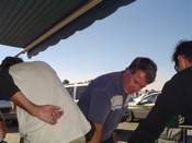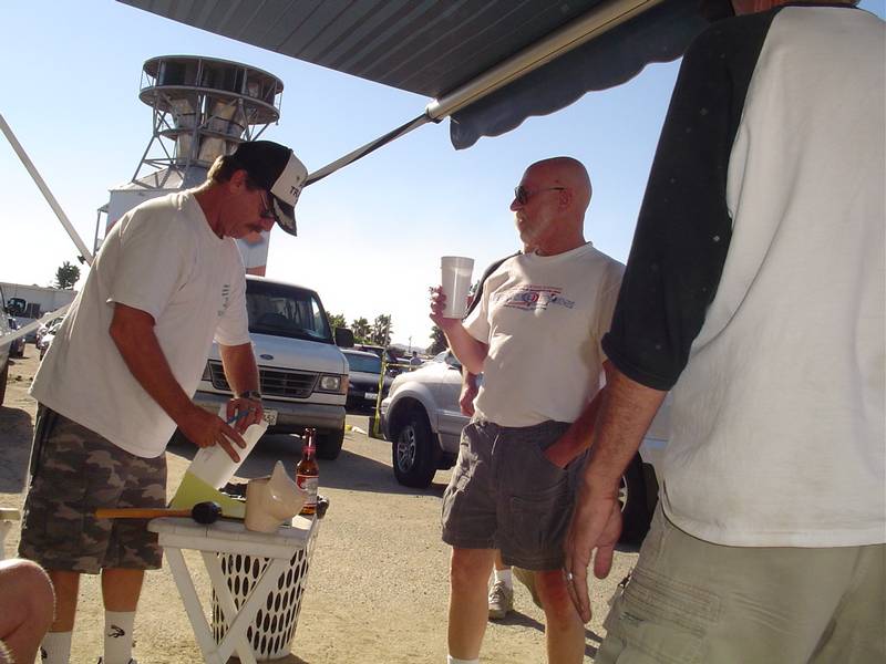 On the weekend of Sept. 9th, the "Pieces Of Eight" Skydiving Team was at Perris Valley Airport to skydive & indoctrinate new members. To qualify, first & foremost, one must be missing a limb. New members have to be in a completed POE freefall formation of at least eight people or more. Here's the official results as reported to Don Vredenburg by legendary skydiver & all around good guy.... Al Krueger..... "As you may have heard, we qualified 5 more POE for numbers with a completed 12 way". "The new members are : Chuck Anderson, Aleksey, Kelsey Rice, Bud McElroy & Dan Glanz". "Others in the 12 way were: Mike Dimenichi, Skip Newman, Keith Ragusa, Bob Clark, Lyle Cameron, Dana Bowman & me". Al then added : "Mike Boland was injured & did require surgery on both feet".... Mike, we wish you a speedy recovery. The Air Trash / Silly Tit gang decided this would be a perfect day to come root for the POE team & to make a couple of leaps ourselves. The usual gang showed up, as did a couple of our favorite skydiving vets. Mike [Sparky] Owens came to visit and Don Vredenburg drove all the way down from Cedar City, Utah. It's a thankless task, but Bob Butt did his best to organize our jumps. The first jump was a successful two point 7 way. The second jump was an SCS attempt for John Veraldo. The 8 way round built clean & was flying pretty nice. John was right there but got a little bit too excited as he attempted to break grips on the formation. It was a good effort though & John bought a case of beer anyway. Him ! Him! ..... "Little Don" Vredenburg was in attendance & enjoyed meeting the POE gang. Like any skydiver, he took advantage of the photo ops & even lurked Tom Sanders' movie camera a couple of times. As afternoon turned to early evening, the usual antics in the parking lot ensued. Slammer recited "Old Nell", and a Silly Tit meeting was held, Ray Cottingham is our newest S.T. He's # 208. Ray, welcome to the lowest point of your life..... Many photos were taken throughout the day & evening by Mike Gerwig, Fred Basile, Don Vredenburg, Larry Walsh & possibly others. The conversation was lively, the cold beer flowed freely & even Al Frisby showed up to join in on the fun. Towards the end of the night, out in the parking lot, Don Vredenburg inducted the new Russian POE member, Aleksey (Alex) into Air Trash. Don presented him with a new Air Trash cap which Linda Hardesty attempted to pour beer all over. [see photos]. All & all it was a perfect day. Great weather, fun skydives and lots of laughter. This is John Bull reporting for Air Trash News..... |