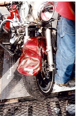 This was my first H.D., '91 FLHS. The result of this wreck is the reason for my early retirement from work and skydiving.